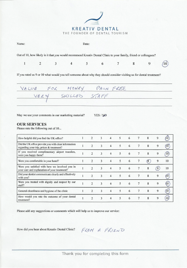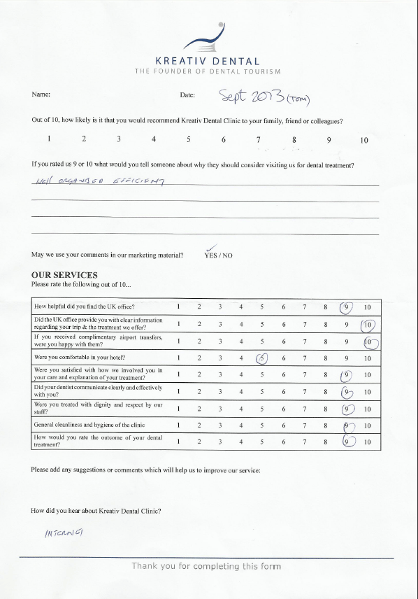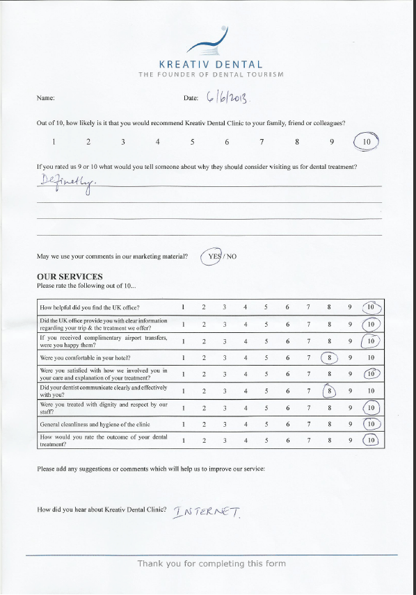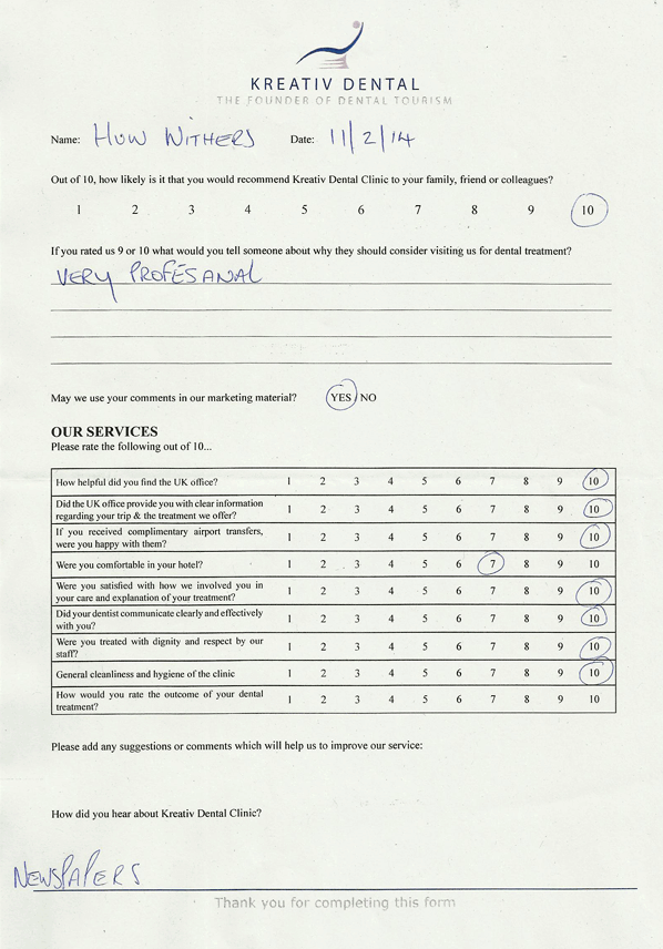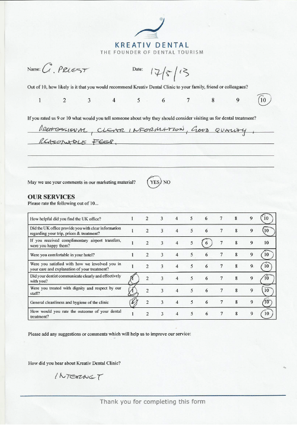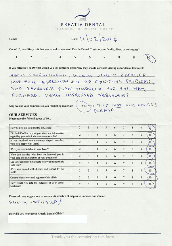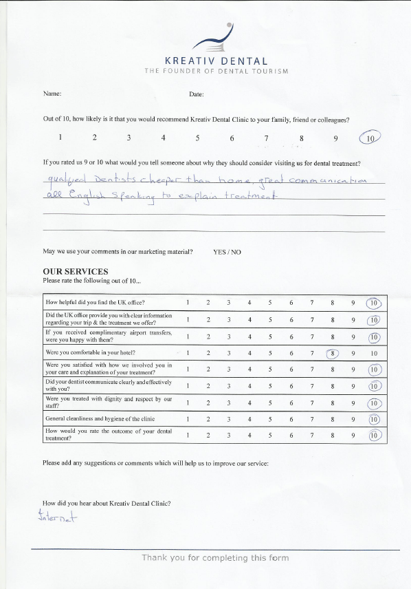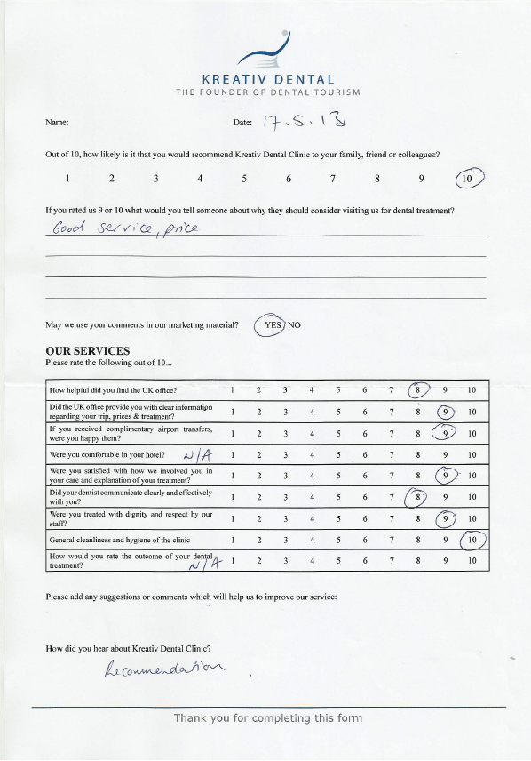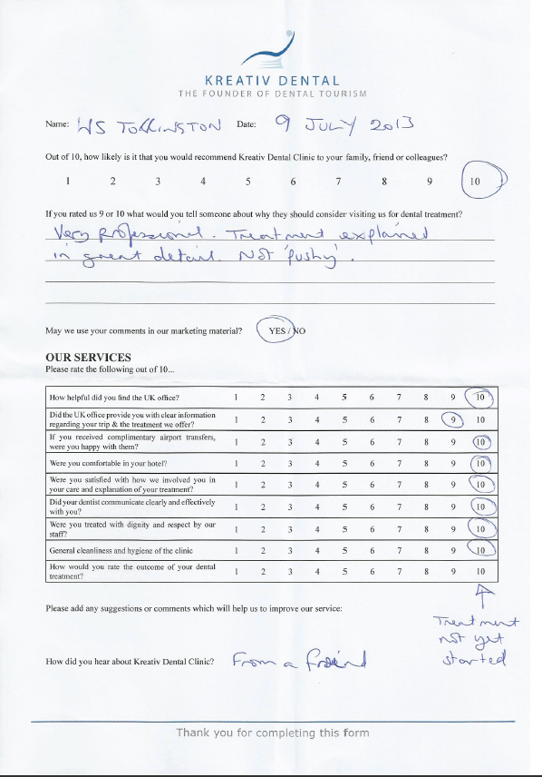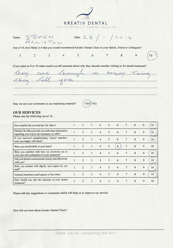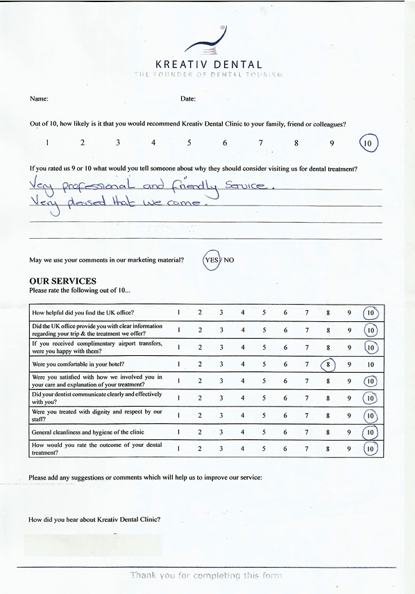 In May 2013 we began to publish hand-written review forms from UK patients. These forms are given to our patients whilst they are at the clinic. These real treatment reviews allow you to see exactly what people are saying about our services.