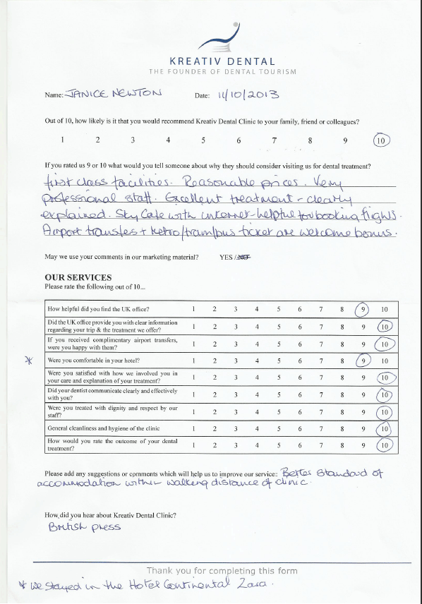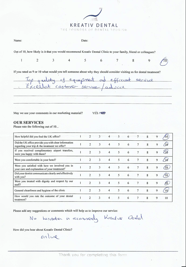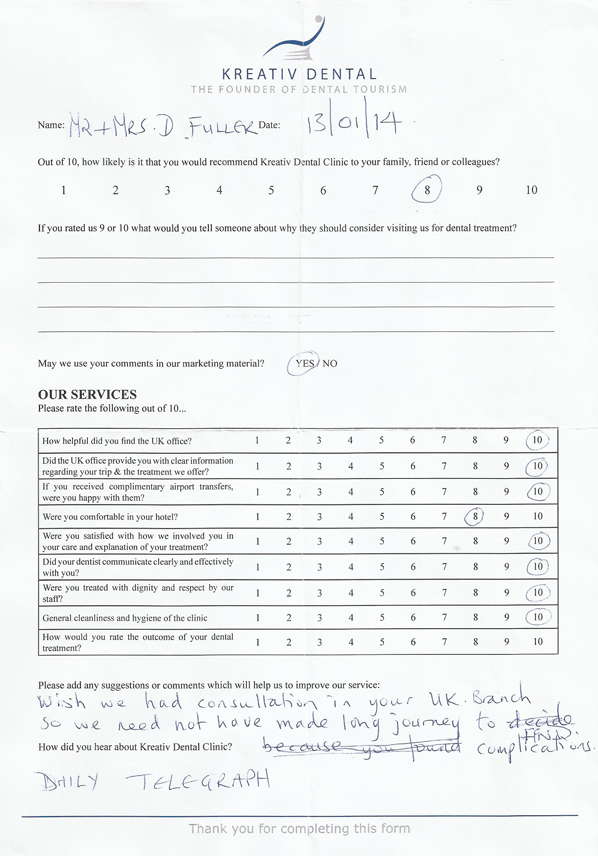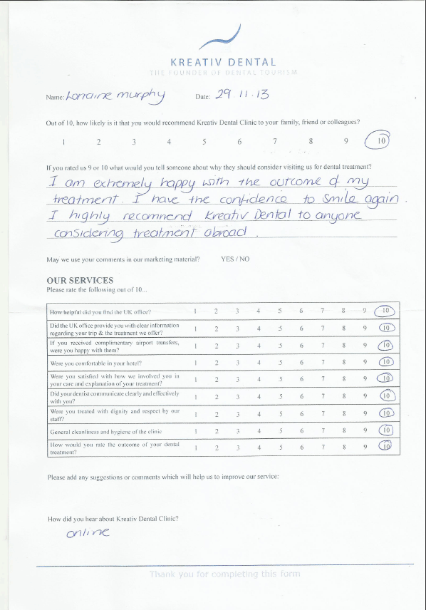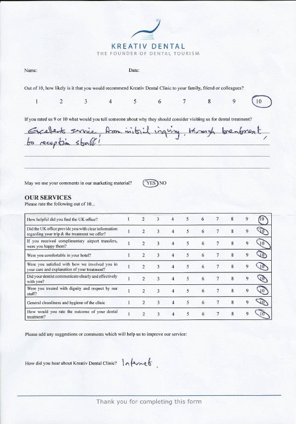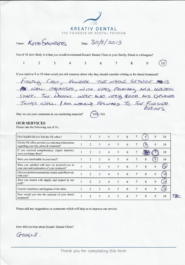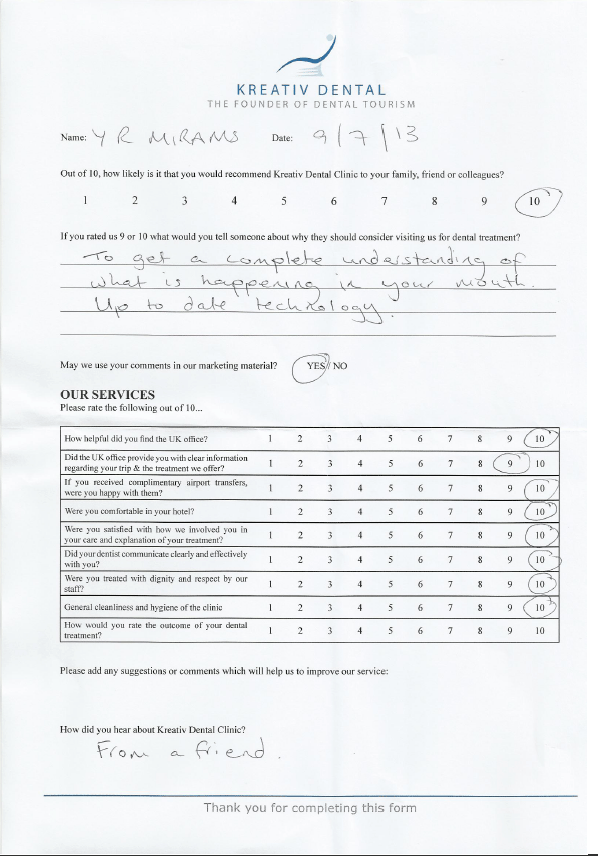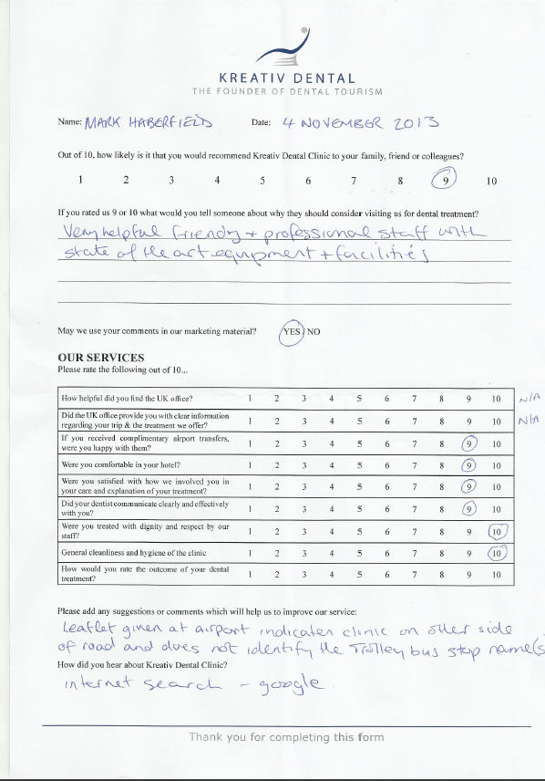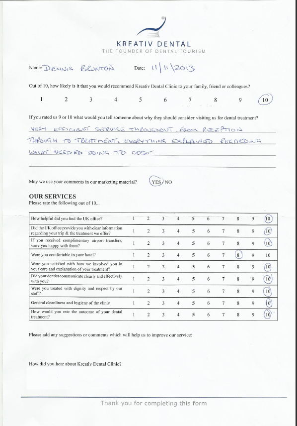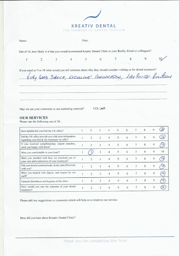 In May 2013 we began to publish hand-written review forms from UK patients. These forms are given to our patients whilst they are at the clinic. These real treatment reviews allow you to see exactly what people are saying about our services.