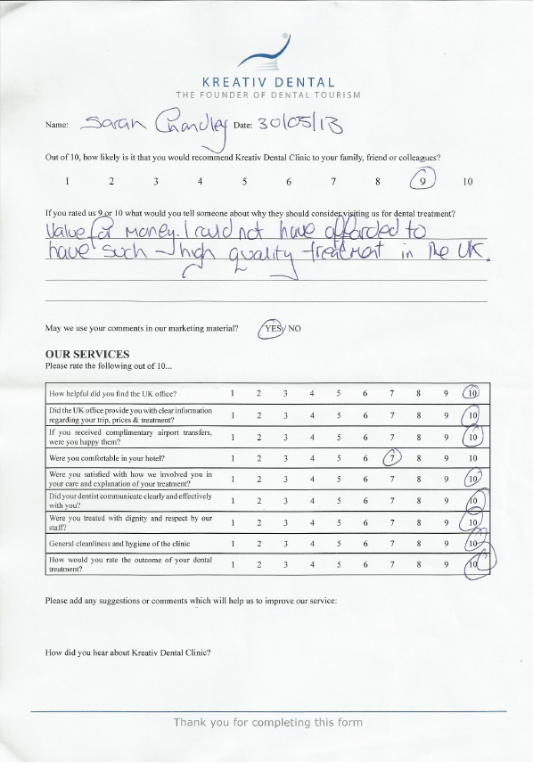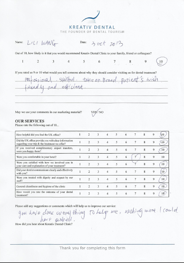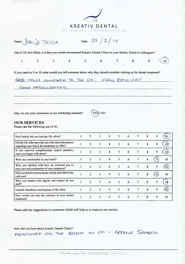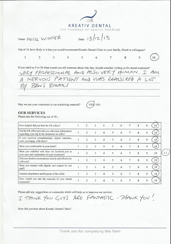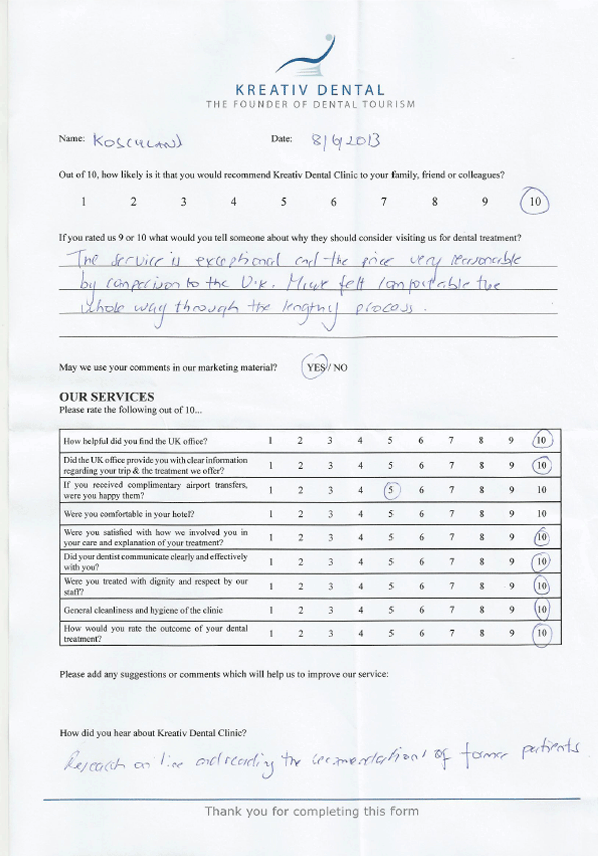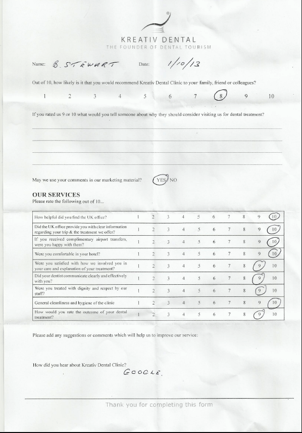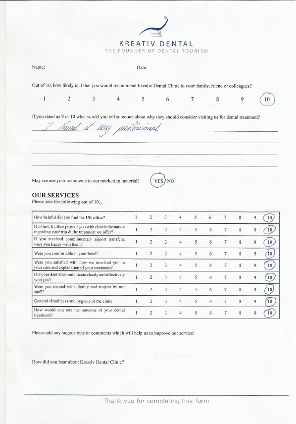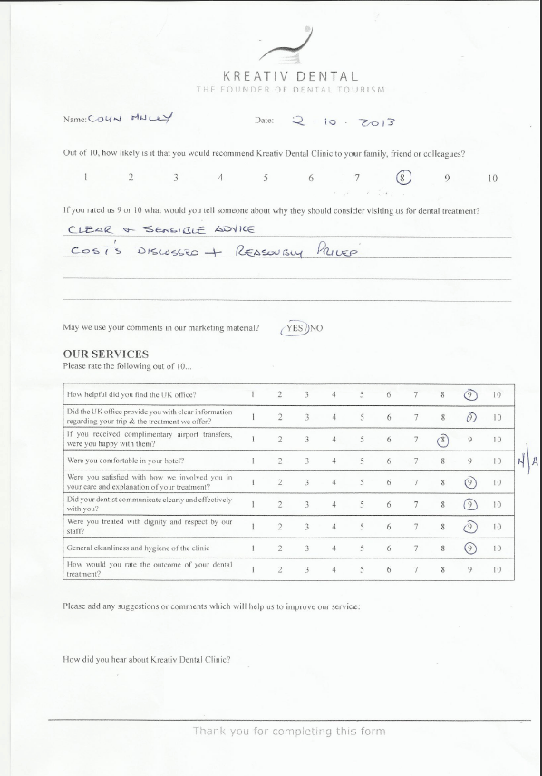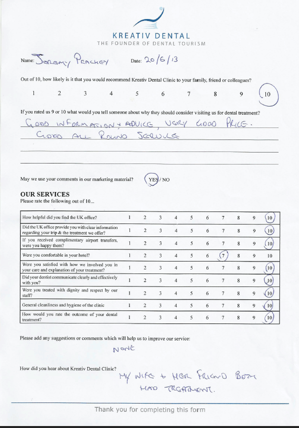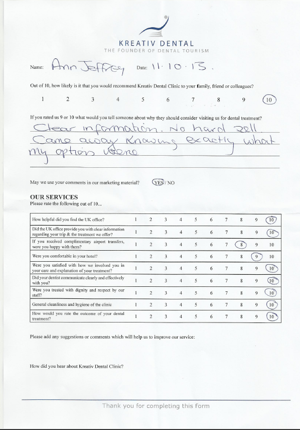 In May 2013 we began to publish hand-written review forms from UK patients. These forms are given to our patients whilst they are at the clinic. These real treatment reviews allow you to see exactly what people are saying about our services.