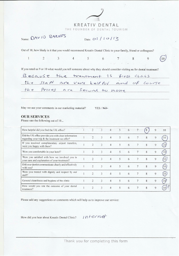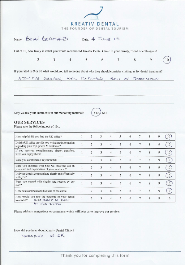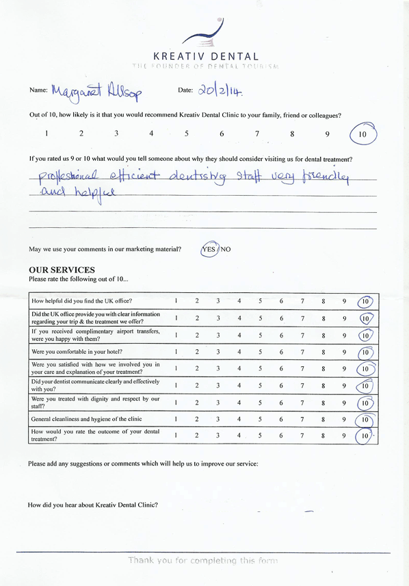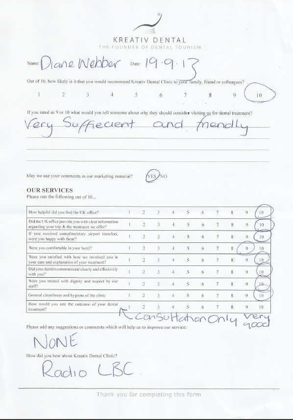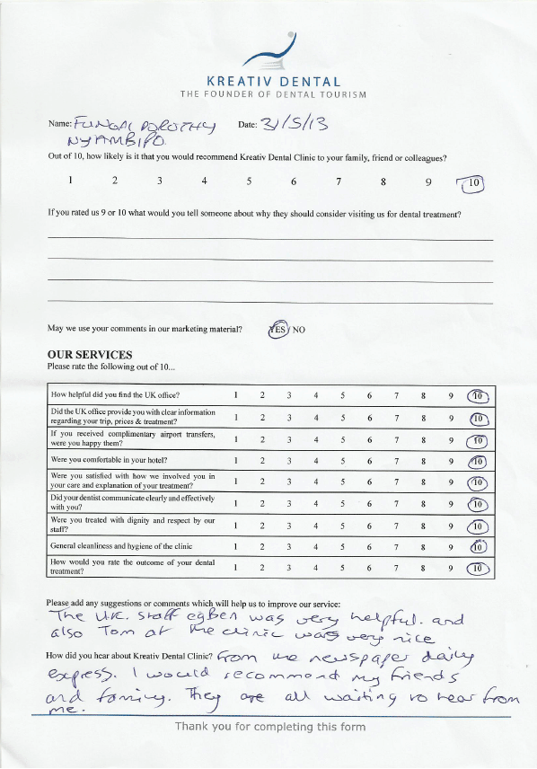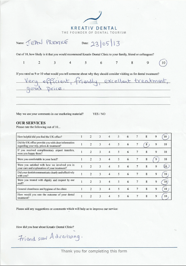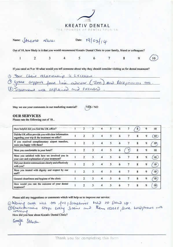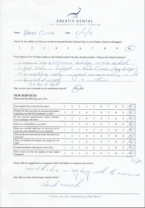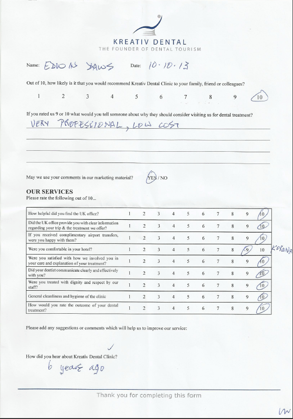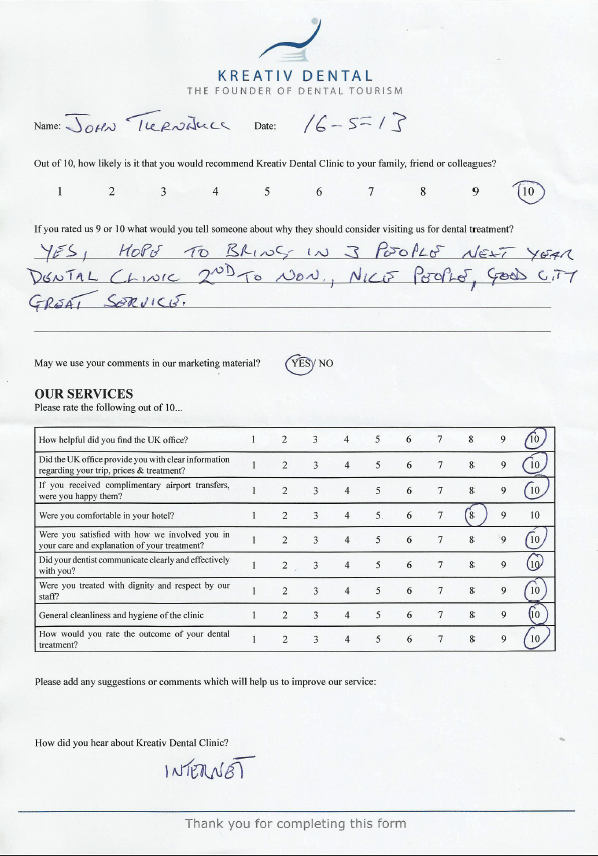 In May 2013 we began to publish hand-written review forms from UK patients. These forms are given to our patients whilst they are at the clinic. These real treatment reviews allow you to see exactly what people are saying about our services.