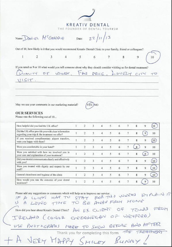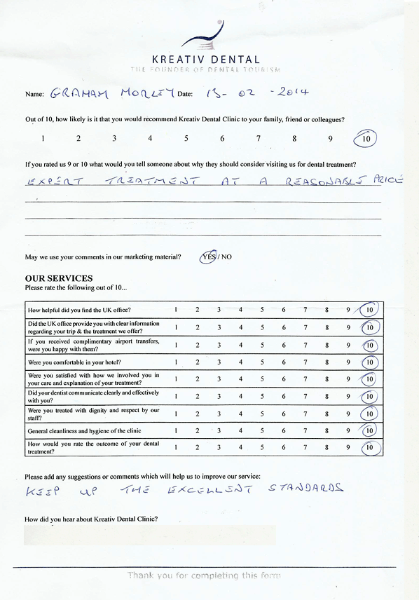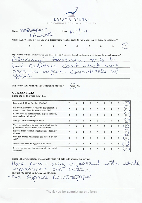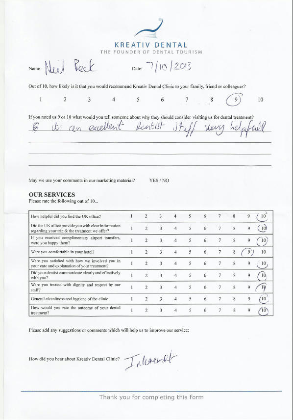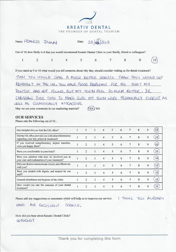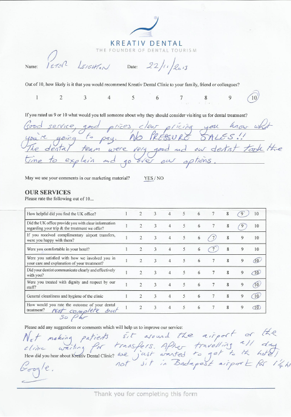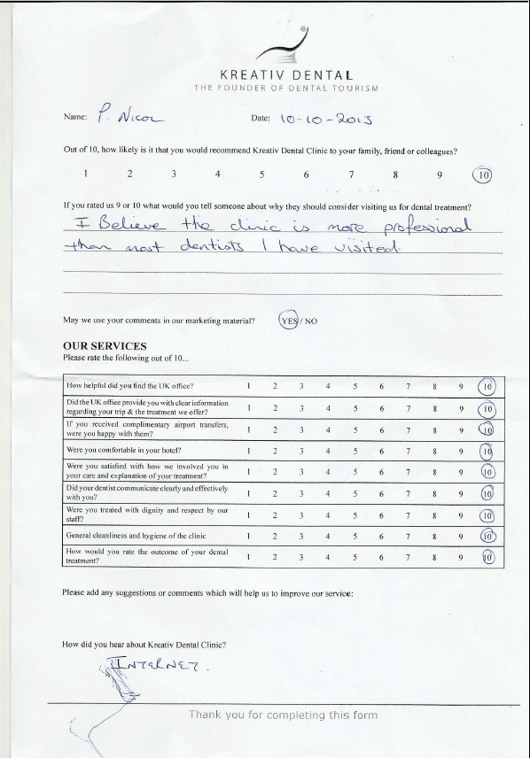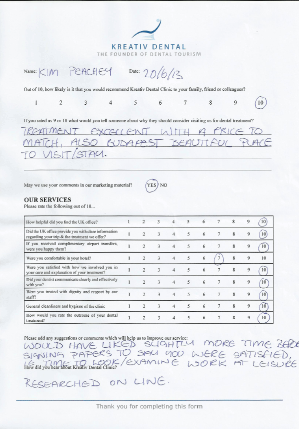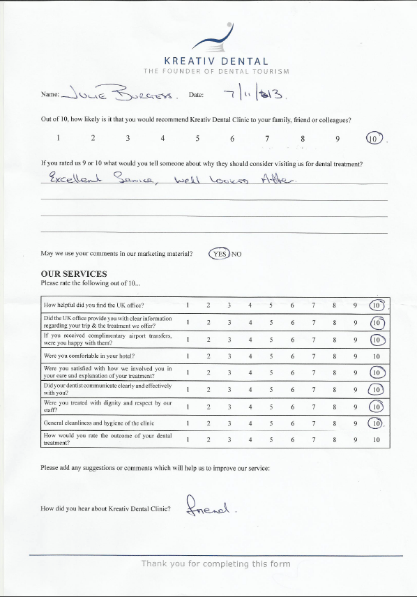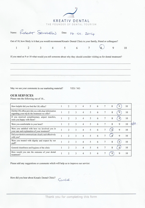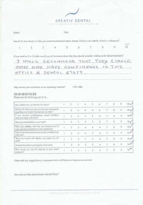 In May 2013 we began to publish hand-written review forms from UK patients. These forms are given to our patients whilst they are at the clinic. These real treatment reviews allow you to see exactly what people are saying about our services.