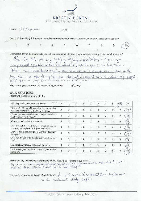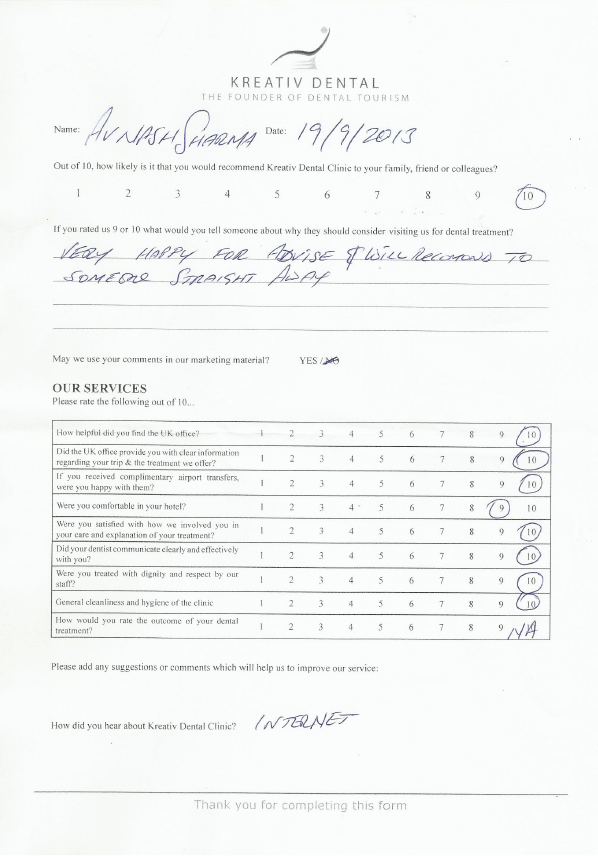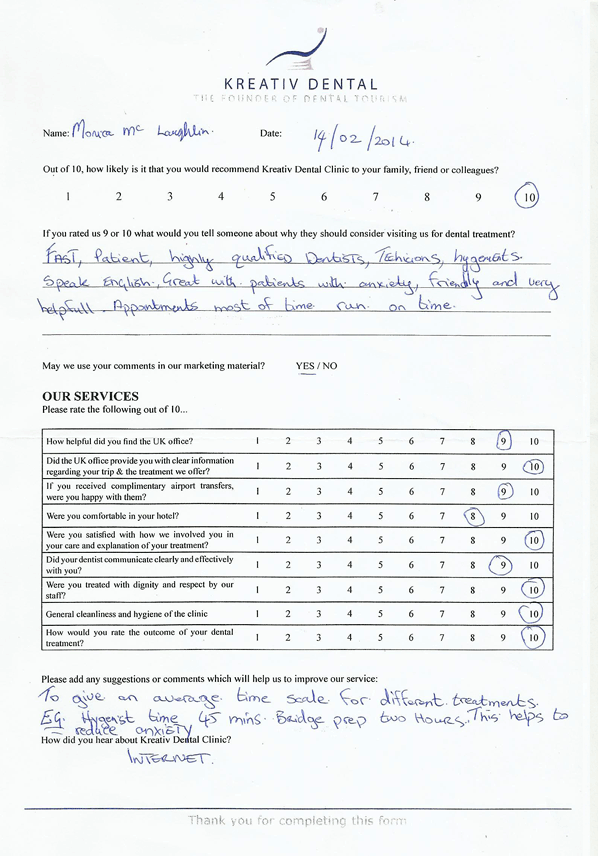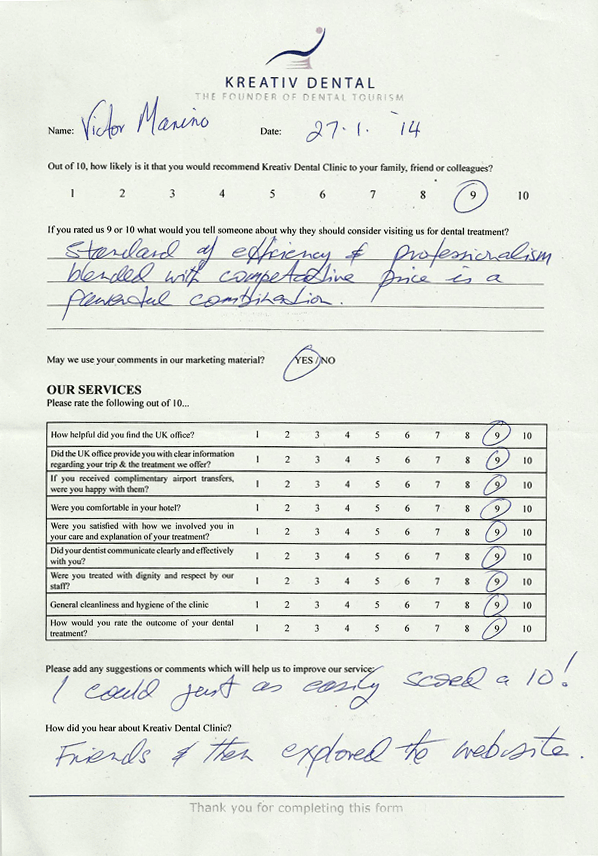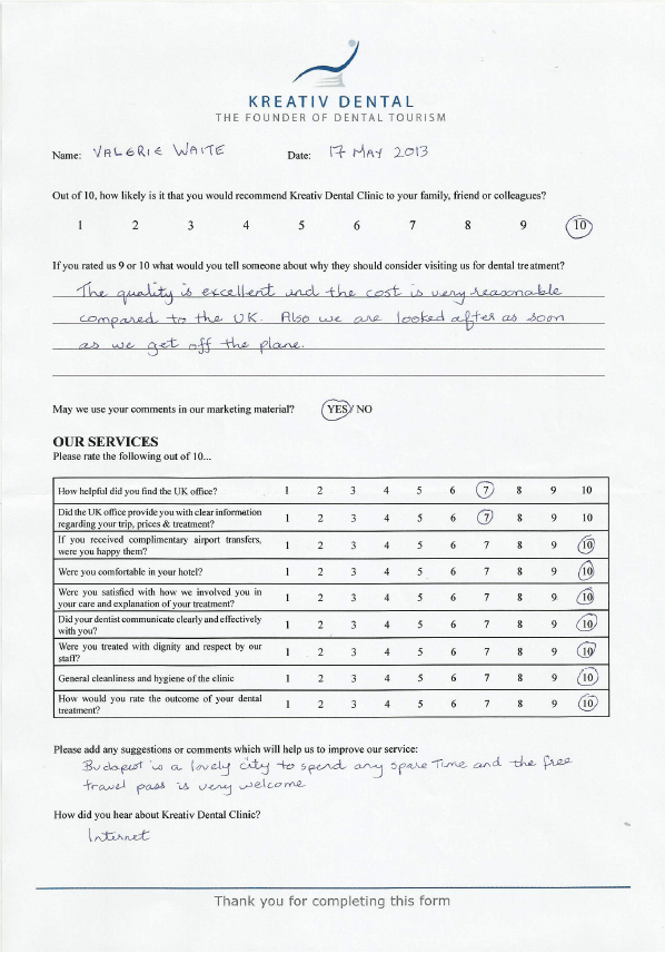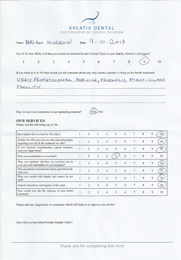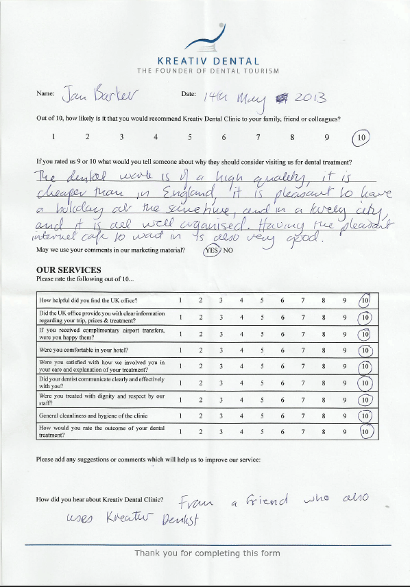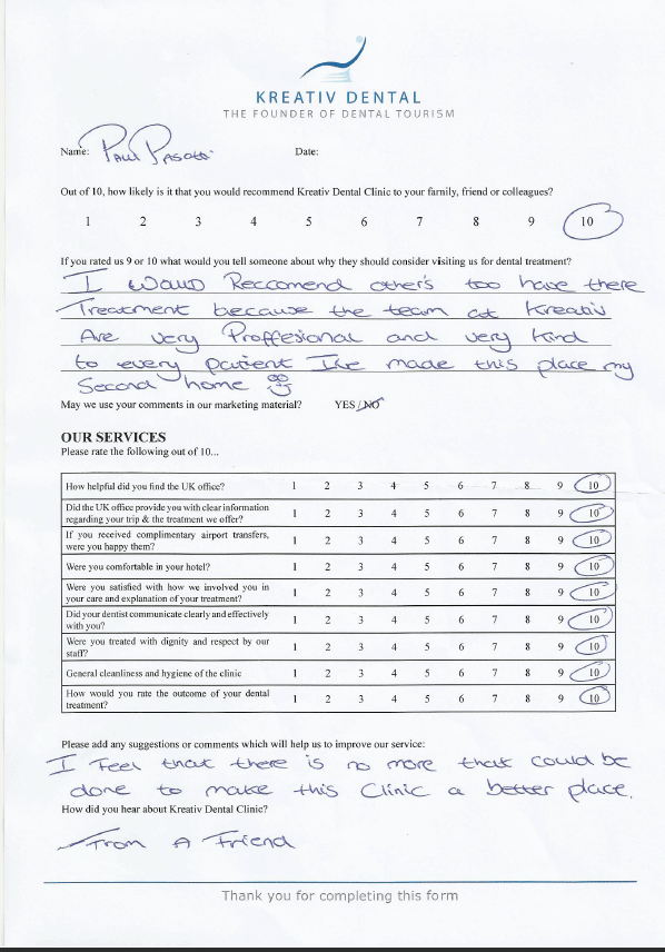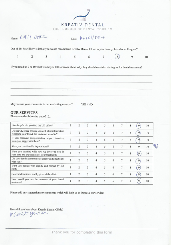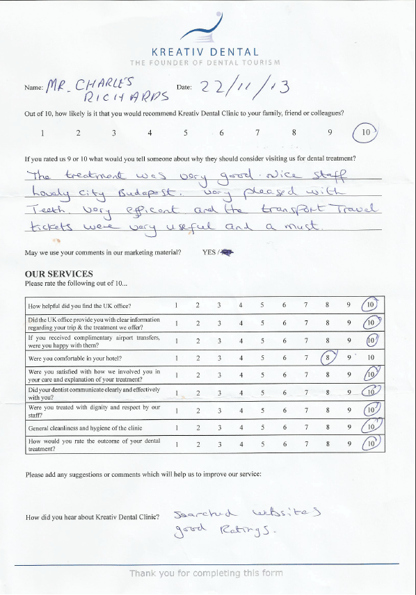In May 2013 we began to publish hand-written review forms from UK patients. These forms are given to our patients whilst they are at the clinic. These real treatment reviews allow you to see exactly what people are saying about our services.